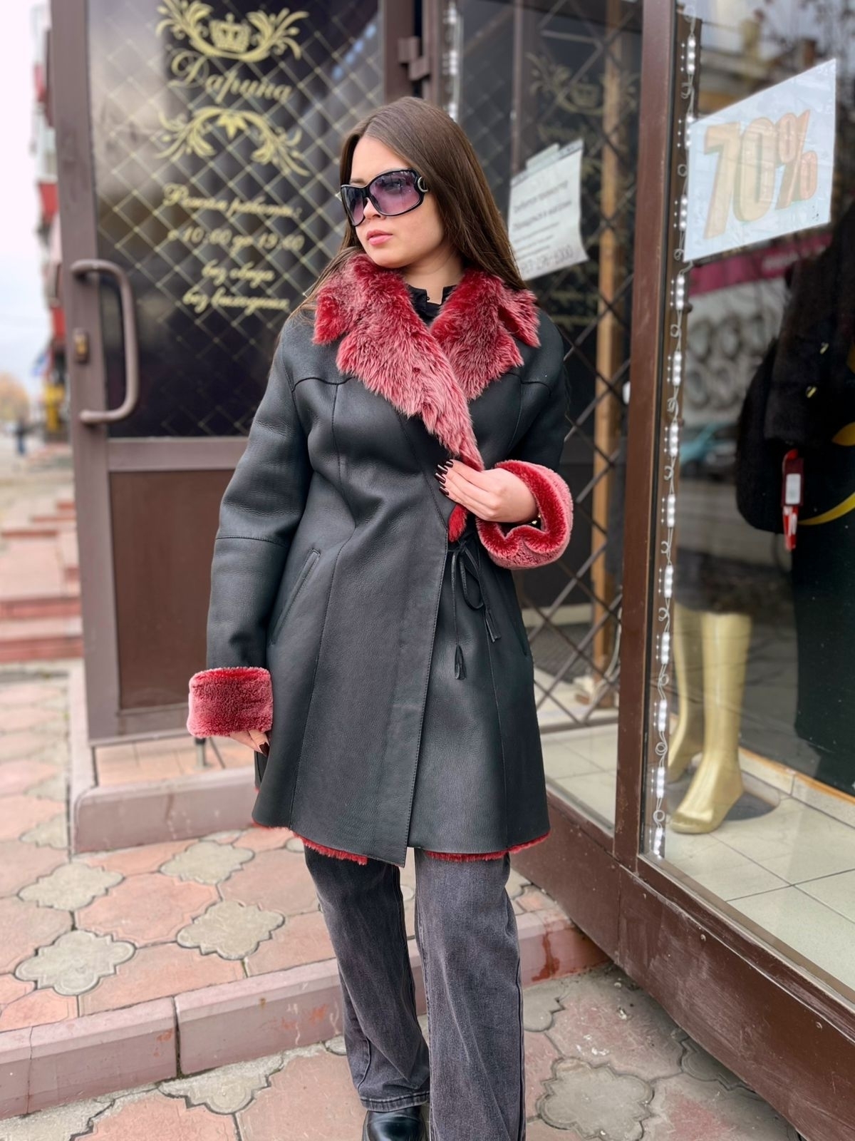 Натуральная лайковая кожа, мех чернобурой лисы отстегивается, подстежка из меха кролика Рекс отстегивается.