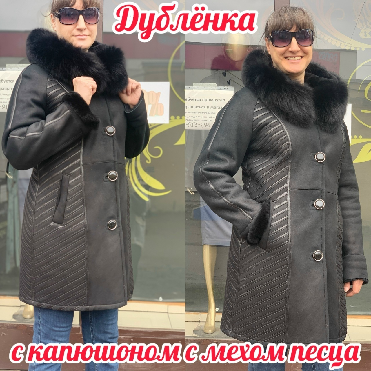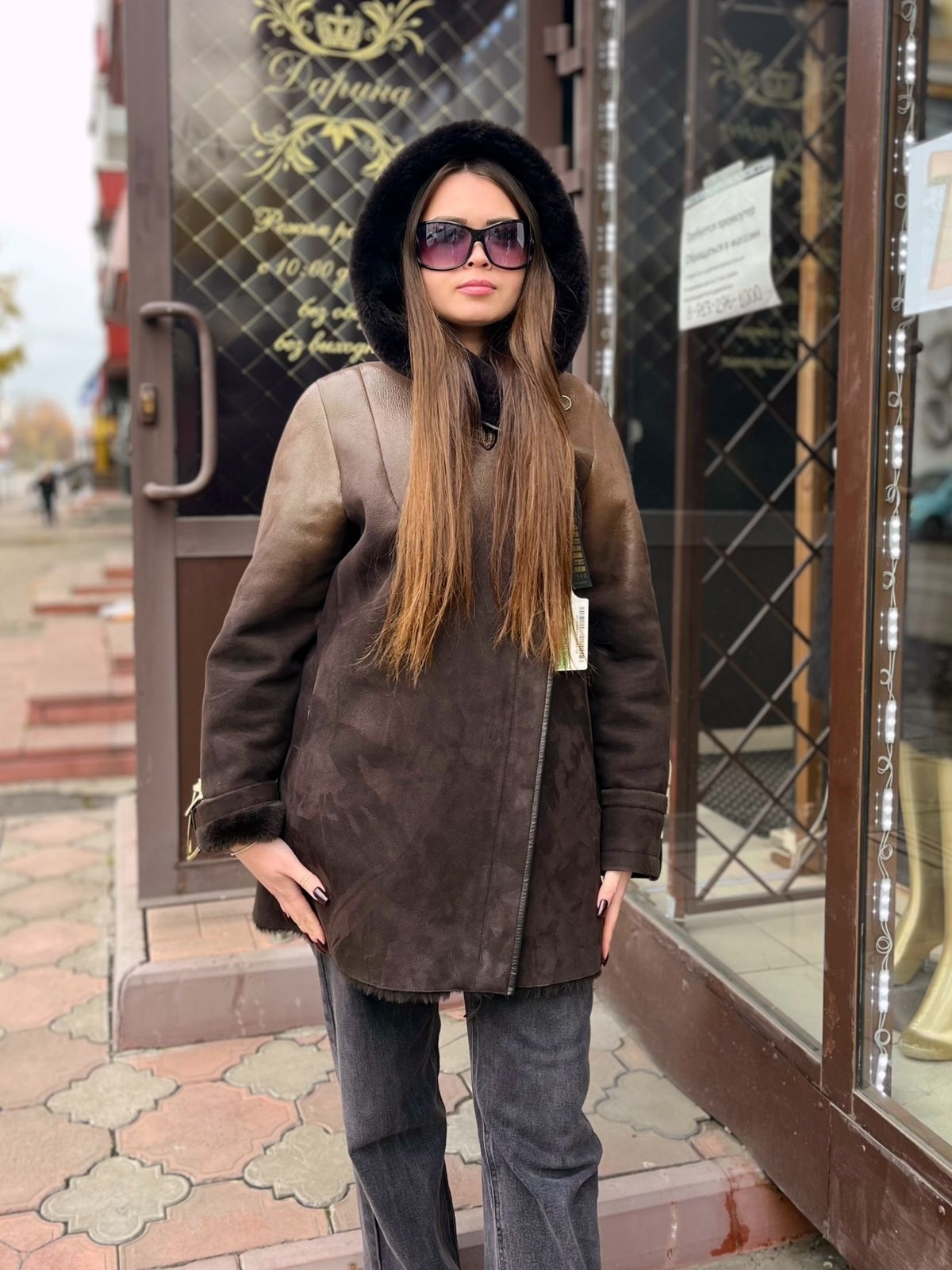 Дублёнка женская с капюшоном, косуха, натуральная кожа