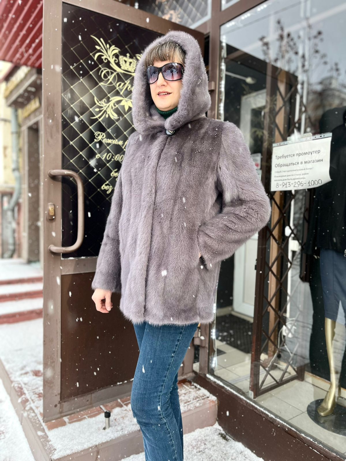 Куртка женская из меха норки с капюшоном. в цвете лаванда